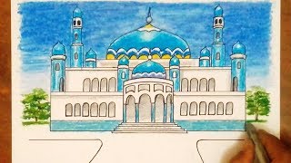 Cara menggambar pemandangan alam agar hasilnya bagus contoh gambar. Warna masjid bagus gambar islami.